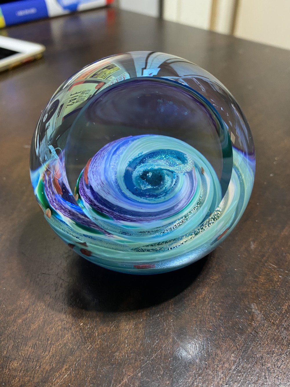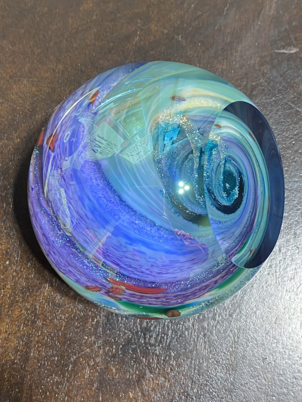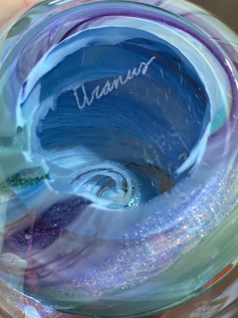 Signed art glass paperweight Glass Art Studio, Celestial Series, Uranus