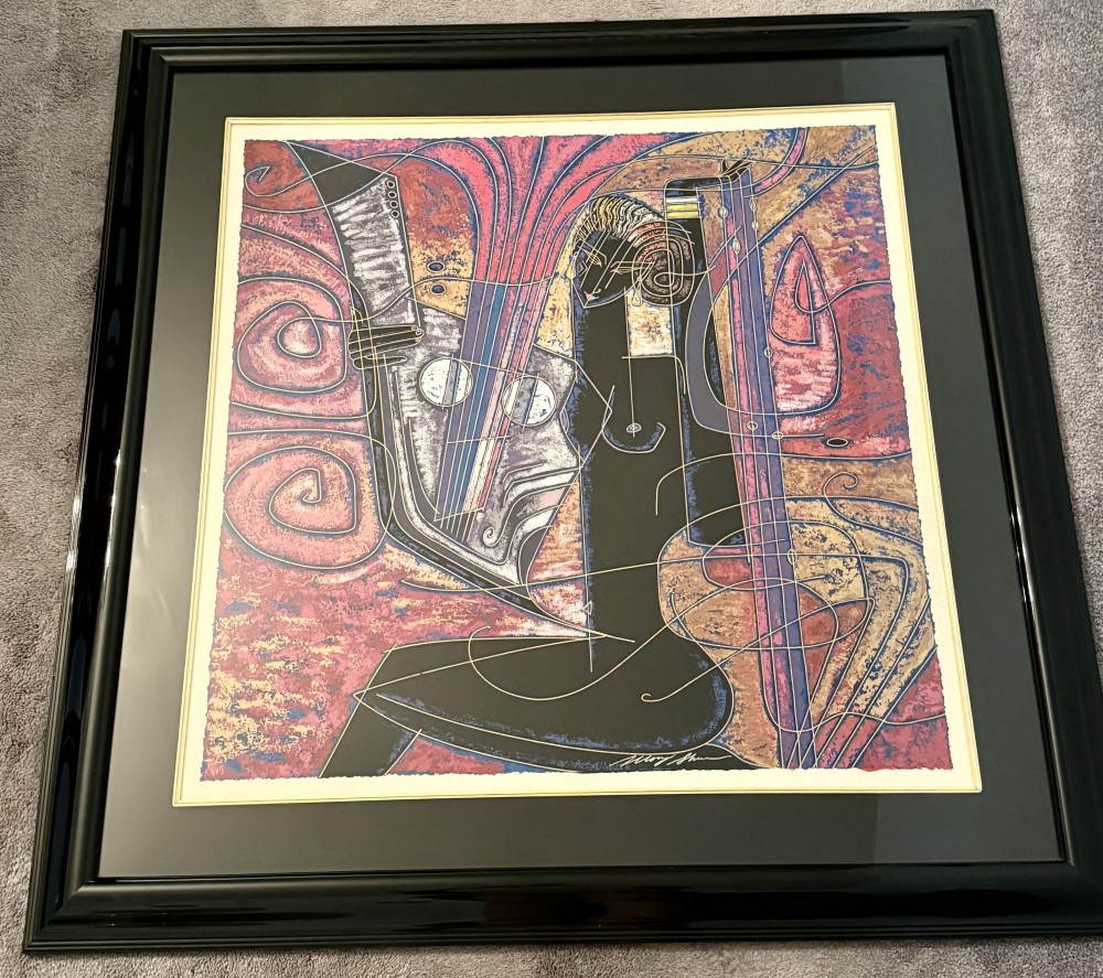 Signed Adrian Wong Shue Heartsongs original framed lithograph art. 45.5 x 45.5 in