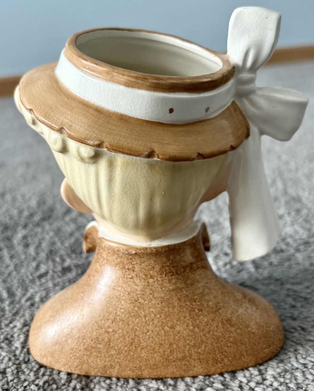 Vintage Napco ceramic blonde glamour lady head vase w/ textured eyelashes. Missing earrings.