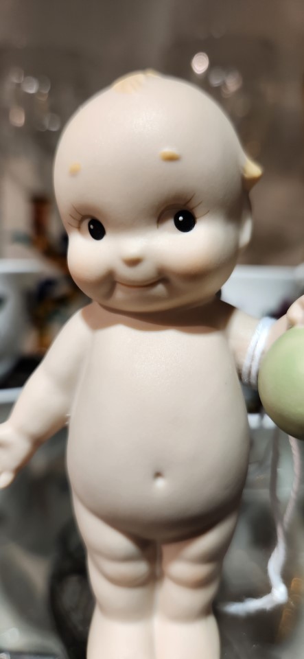 1992 Vtg. ENESCO Kewpie Baby w/Green Ball Figurine