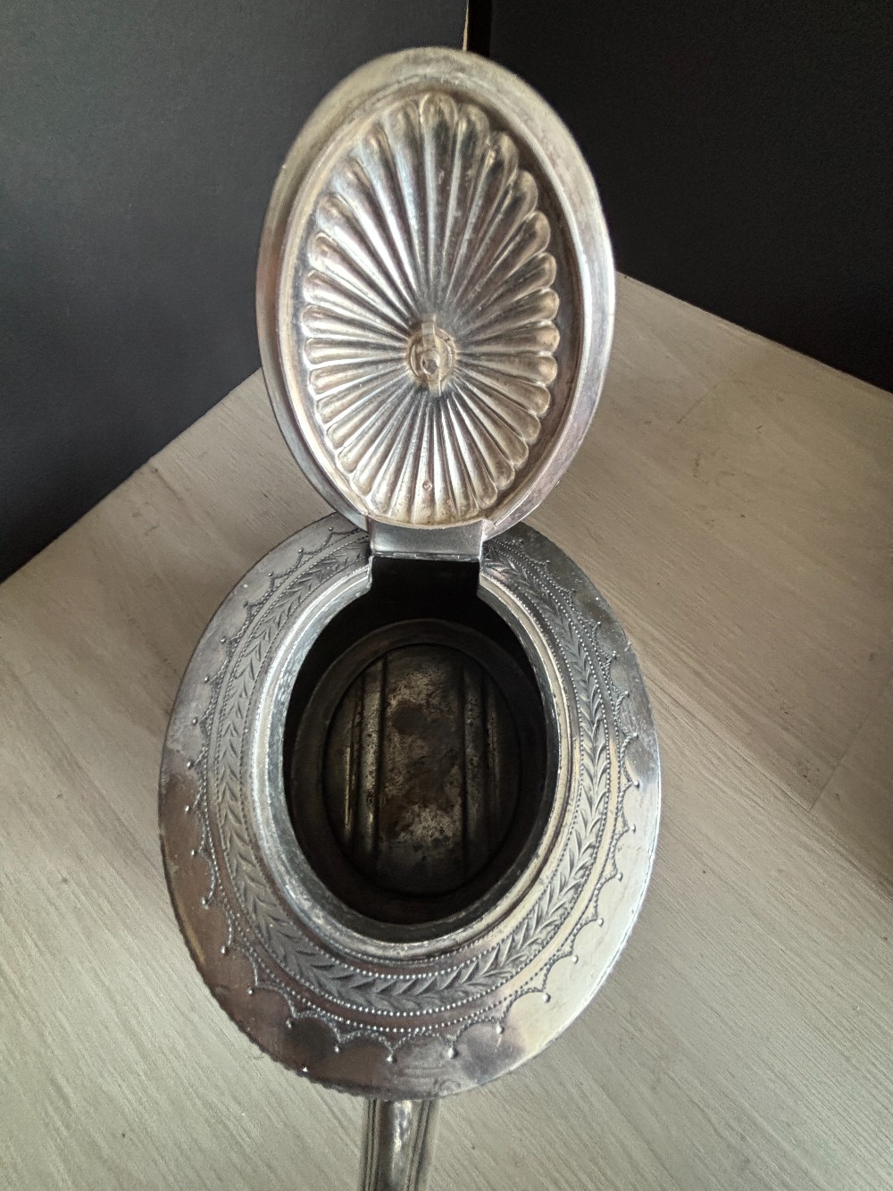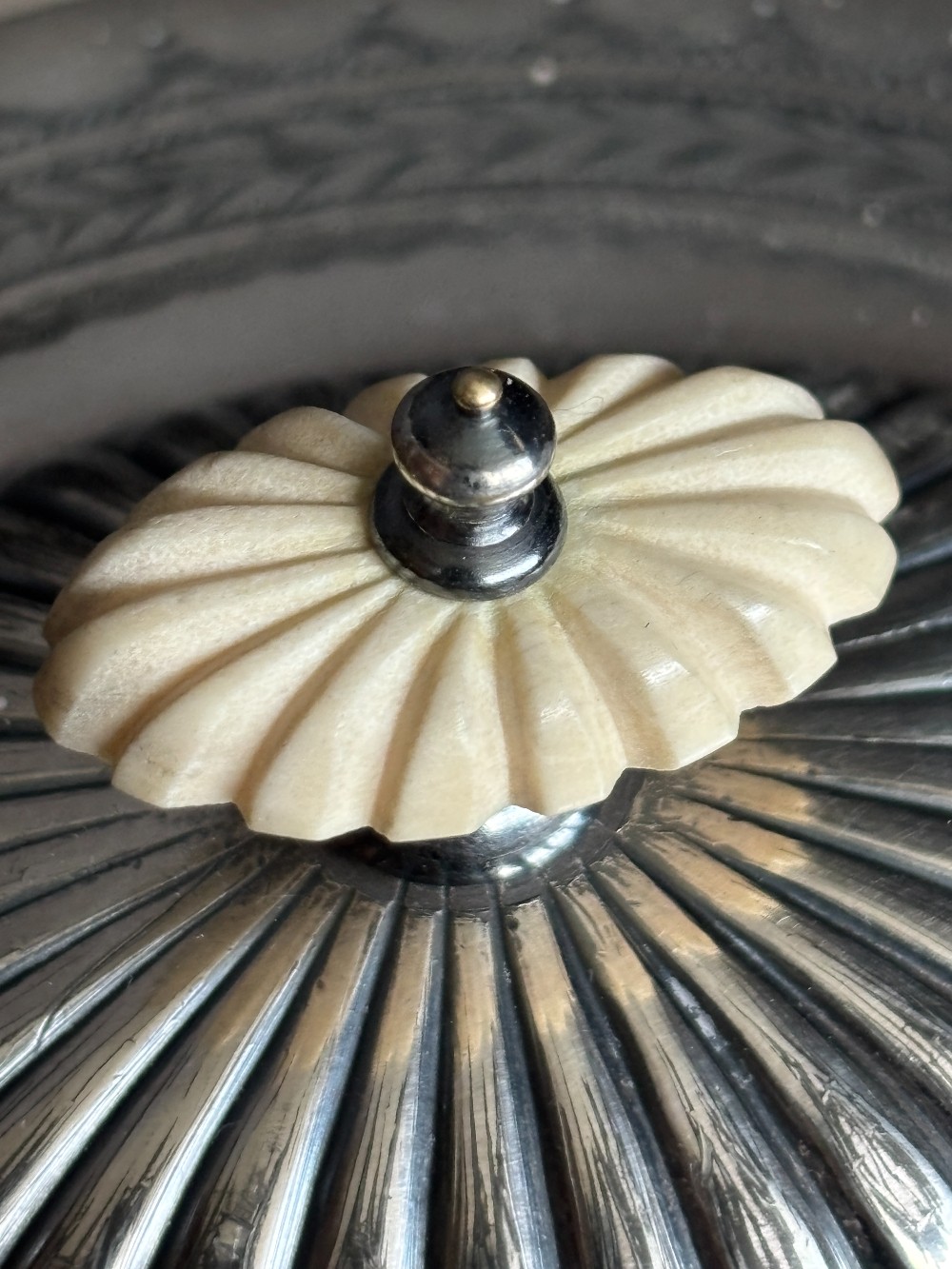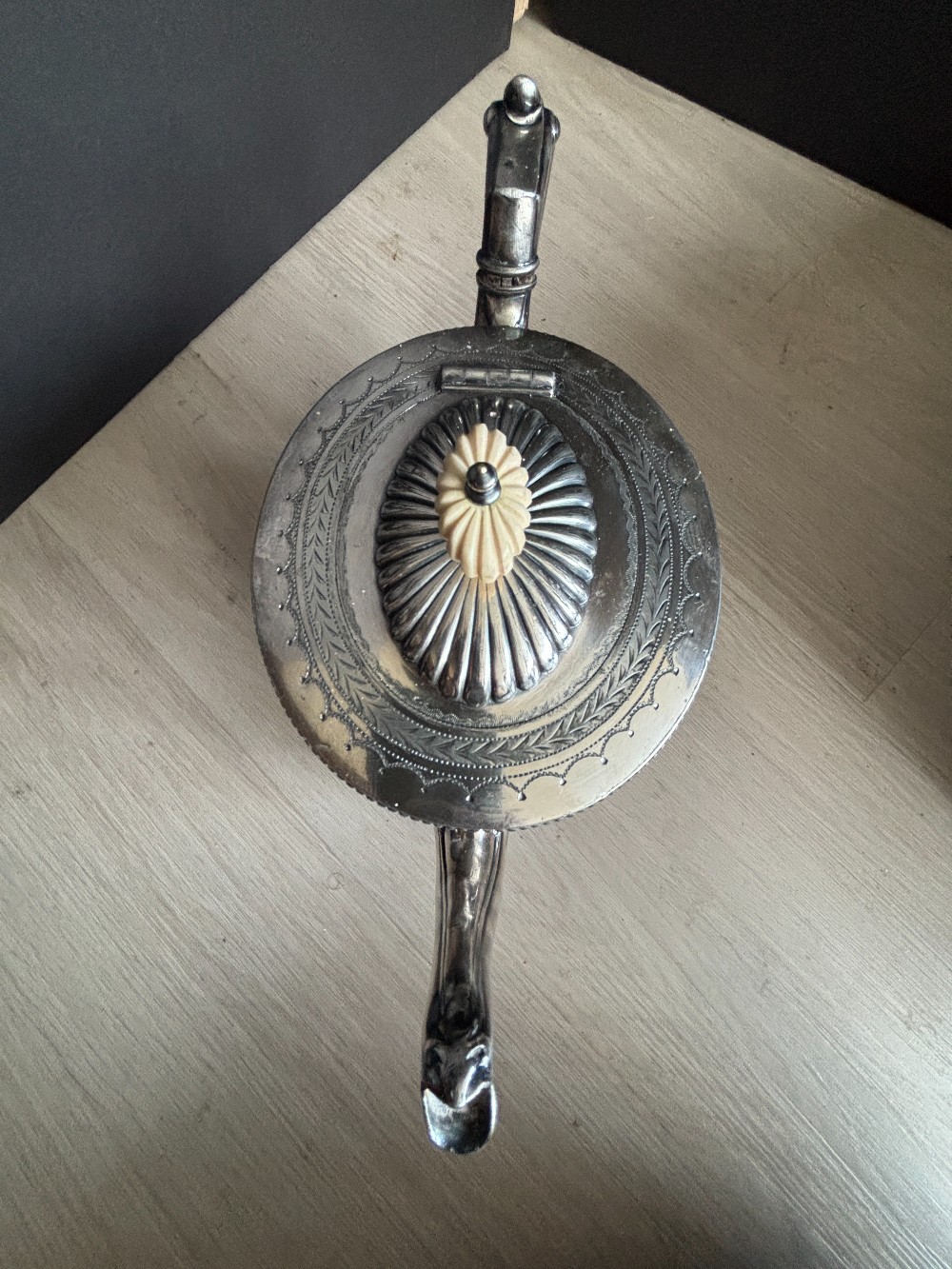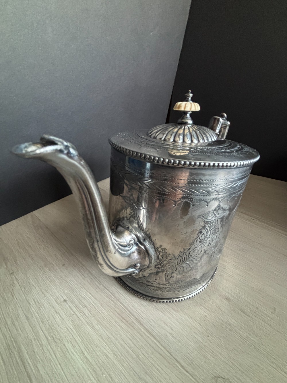 Antique Teapot c1890 Bone Finial and a little gold plating. Some surface wear that I could not polish up.